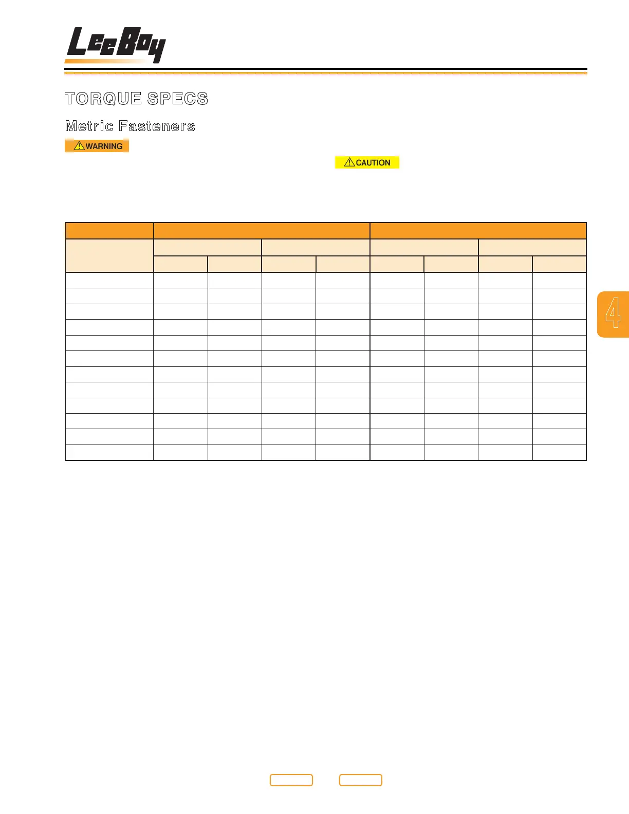 Table 4-10. Torque Specications For Metric Fasteners