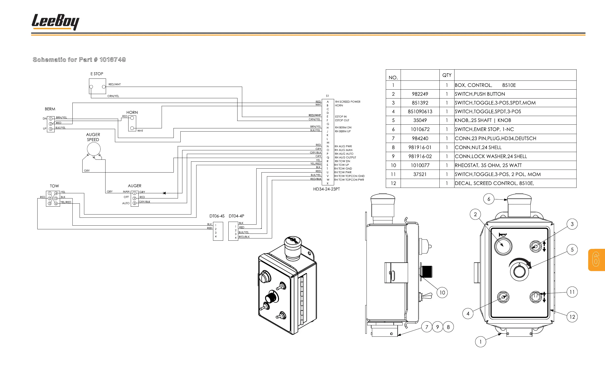 LeeBoy 8510E - Screed 6 Function Control Box Assembly - Right