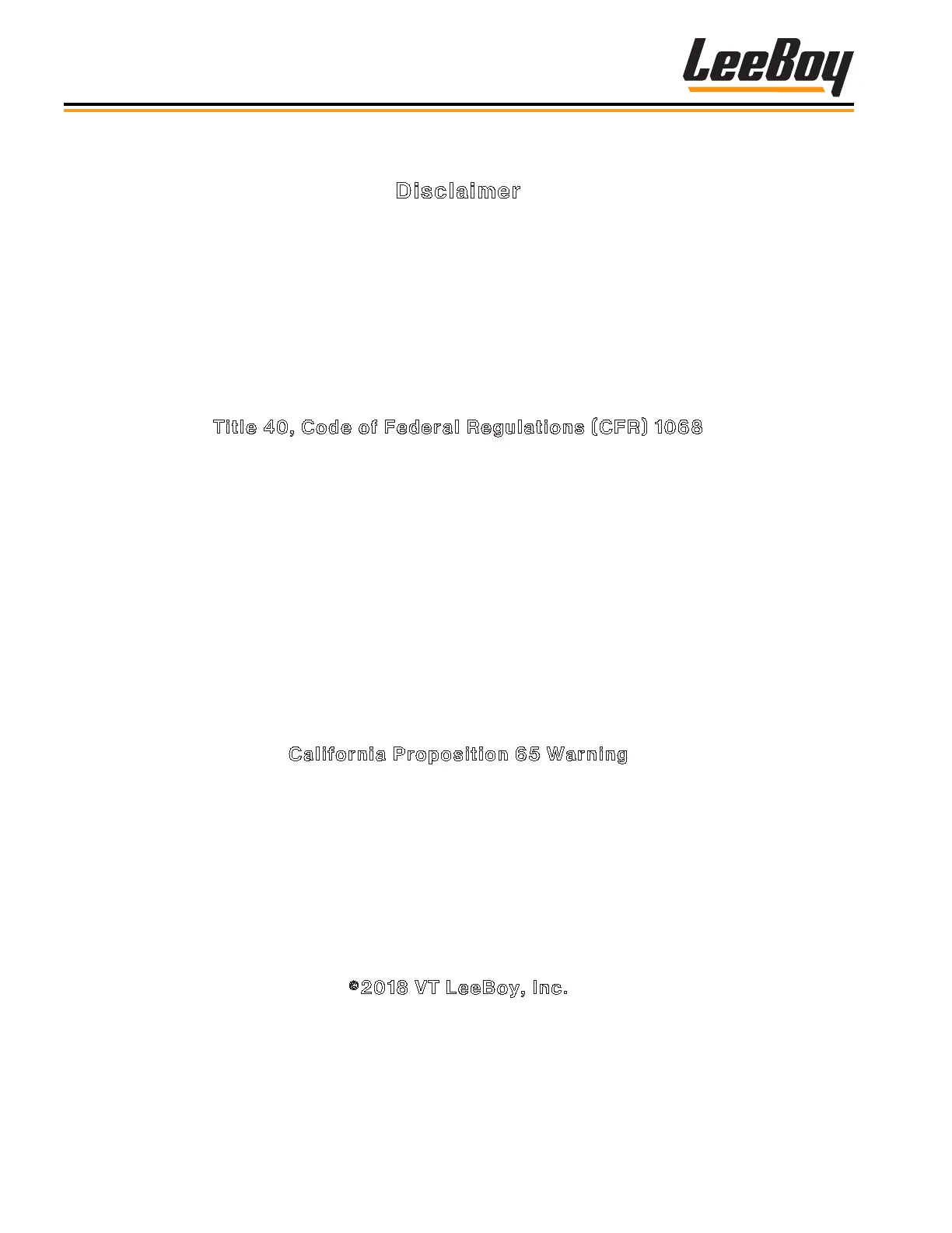 LeeBoy reserves all copyright and other rights in this manual and the manual’s content. No part of this