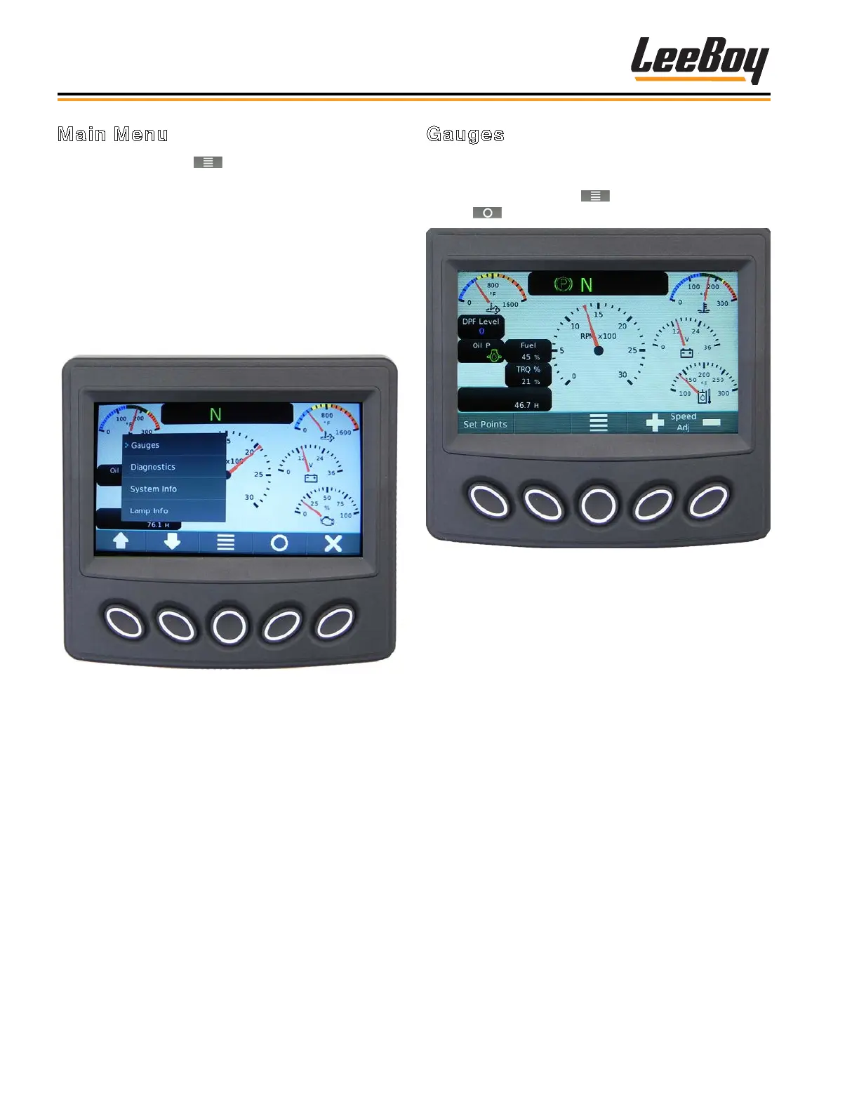 The Gauge Screen (Figure 4-6) is the Main Menu