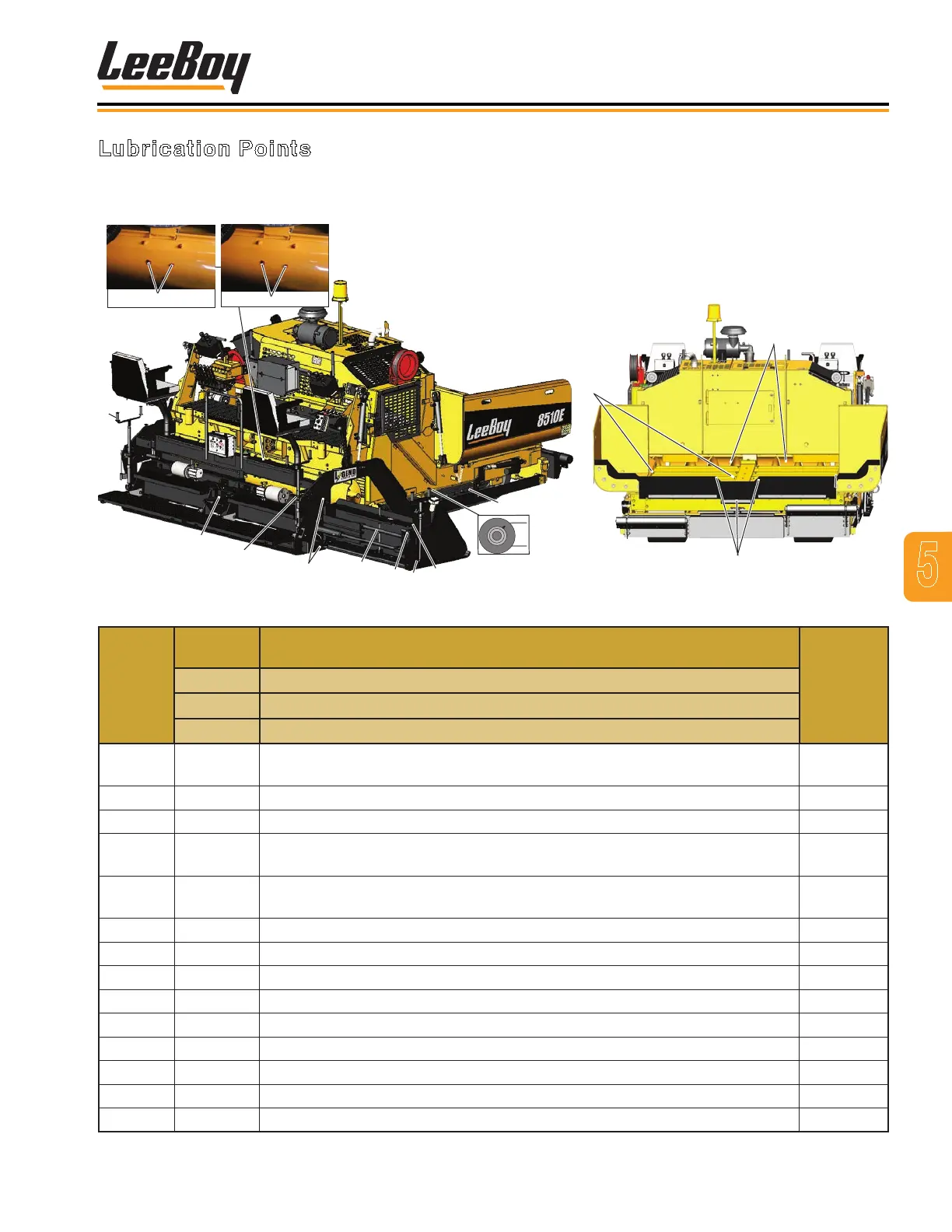 Proper lubrication is necessary to maintain the LeeBoy Model 8510E Conveyor Paver at top efciency. Refer to the