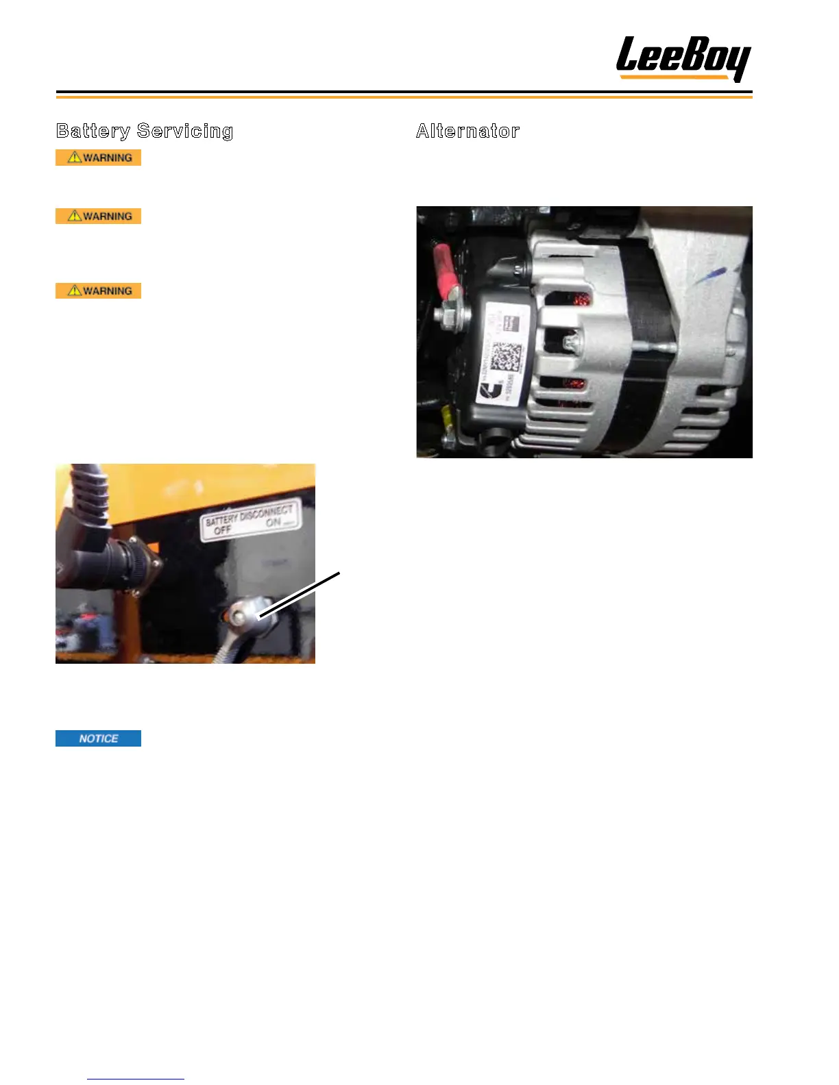• Never disconnect the alternator while machine is