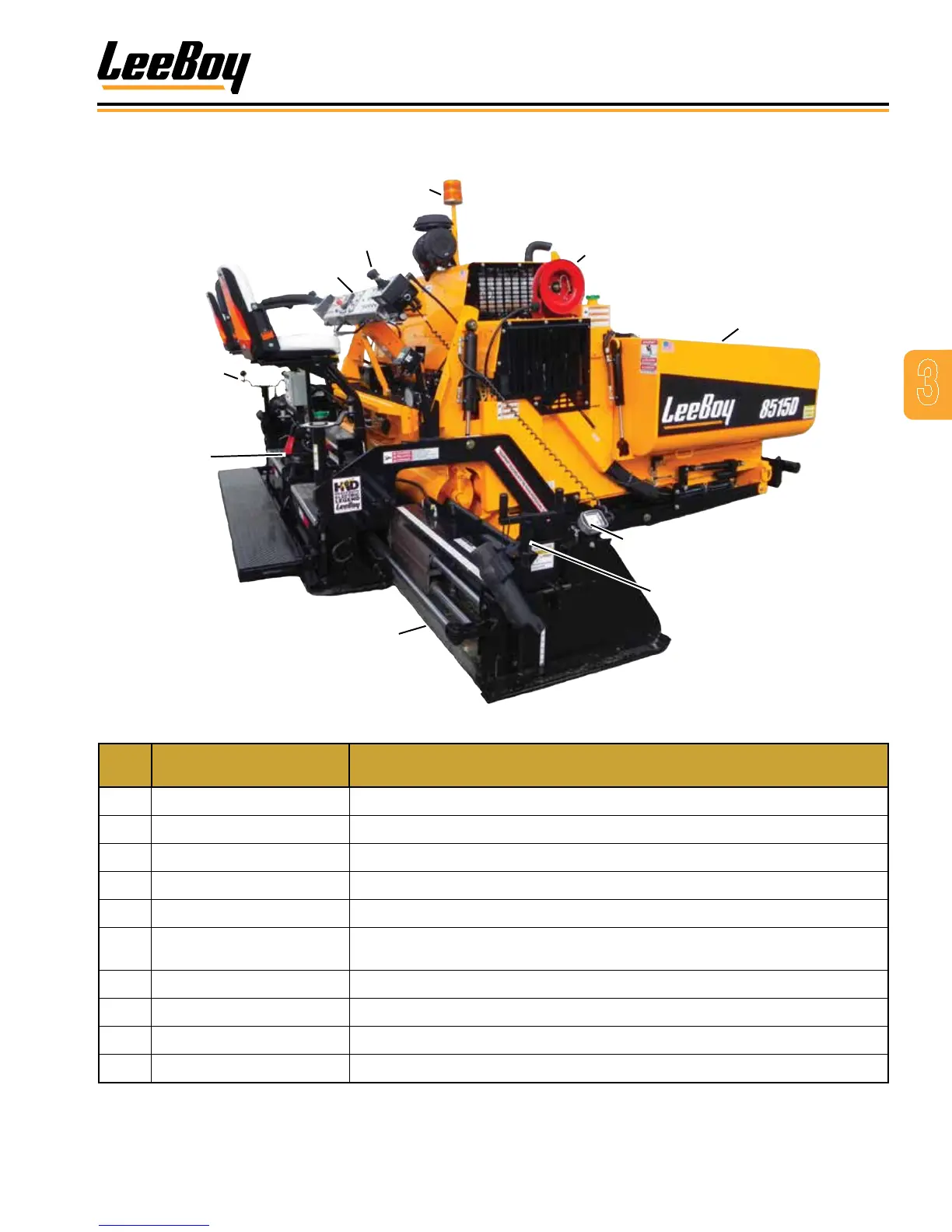 9 Endgate Depth Screw Controls depth of the screed endgate.