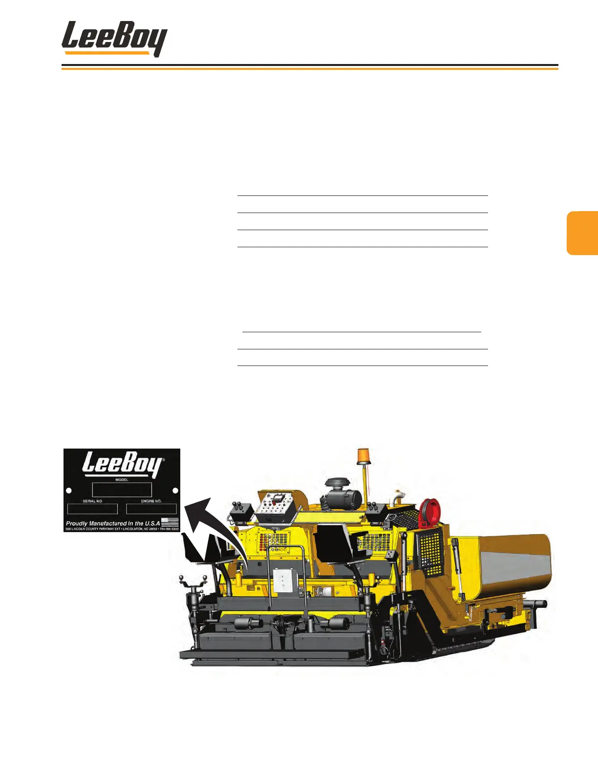 Please complete the following information for use if you need to contact LeeBoy for service, parts or literature.