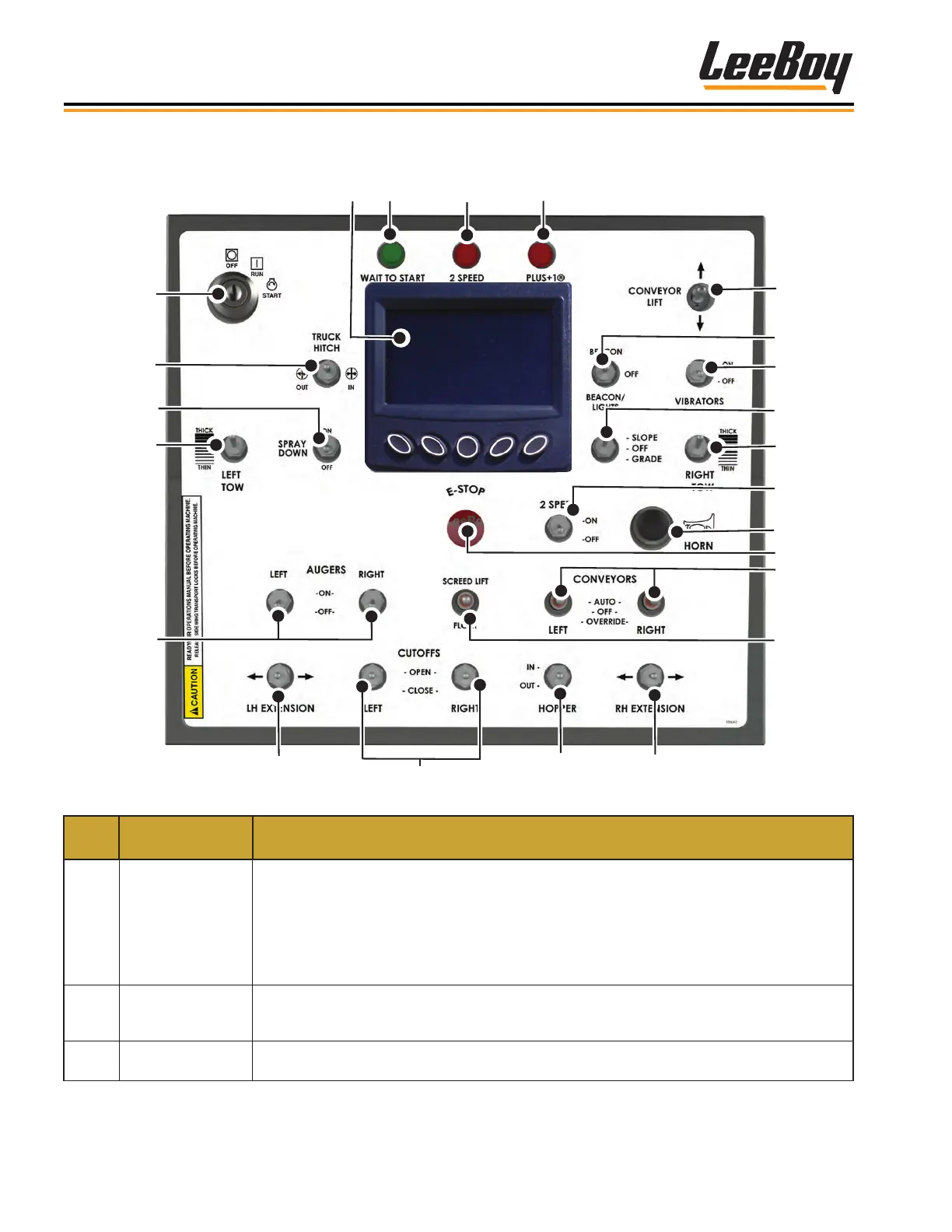 Sets the thickness of the asphalt and controls the electric ight screws. Operator can select
