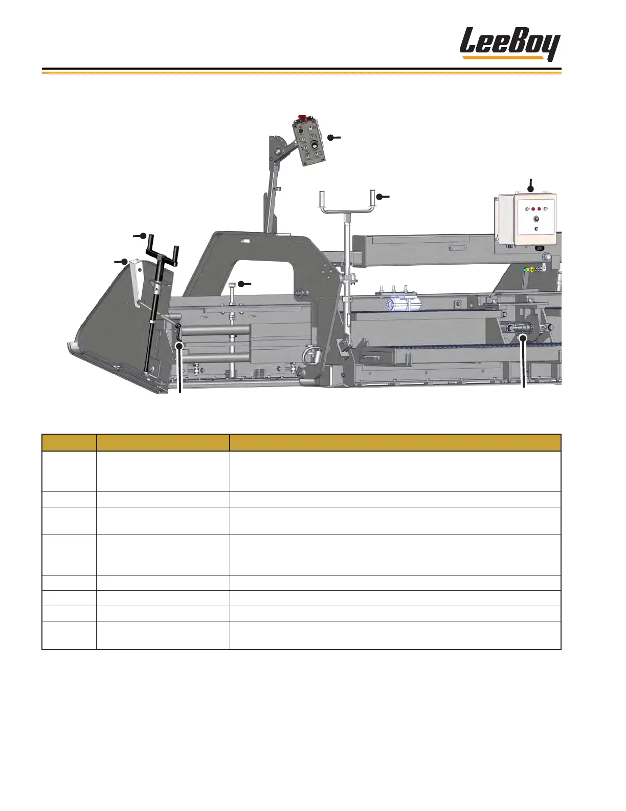 7 Tilt Screw Adjusts the tilt of the end gate.