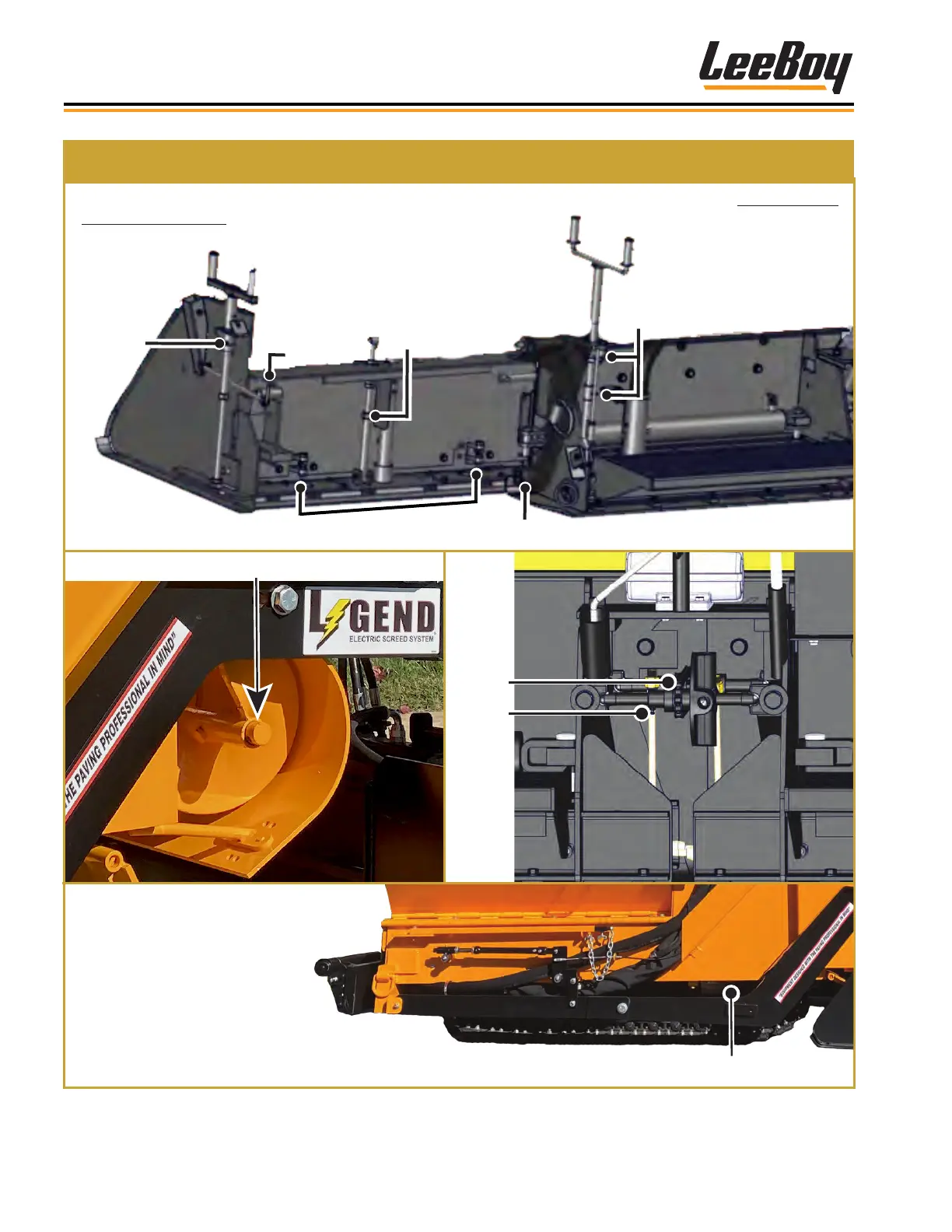 Lubricate all screws and bearings on the screed and screed extension components shown below with Shell Avania EP