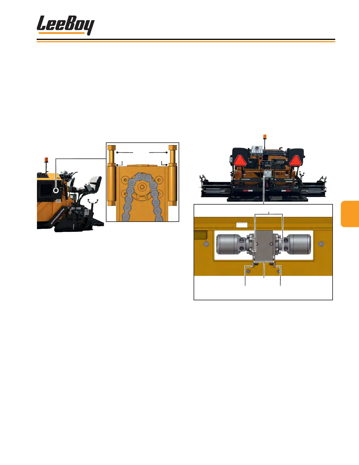 Inspect drive chains on both sides of the paver, located