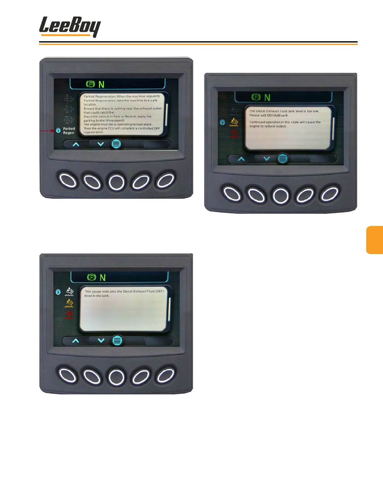 DEF tank level icon. The icon changes color with the