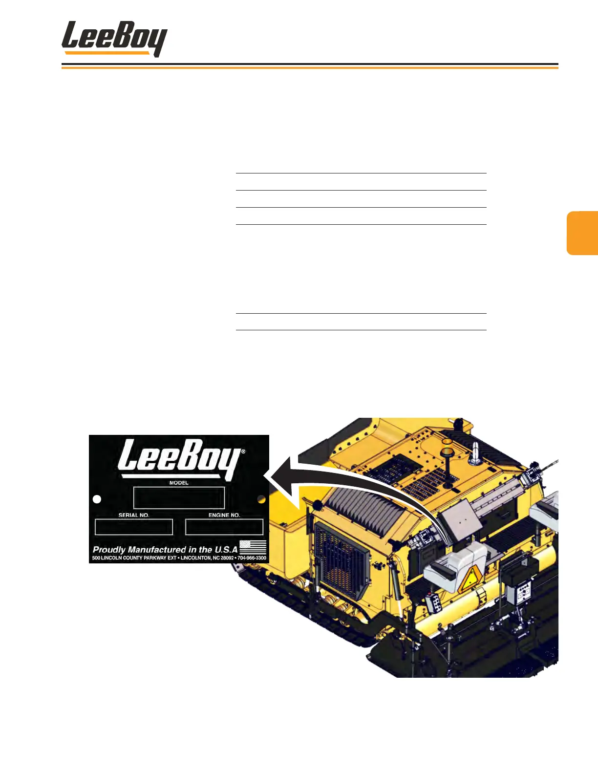 Please complete the following information to use if you need to contact your authorized LeeBoy dealer for service,