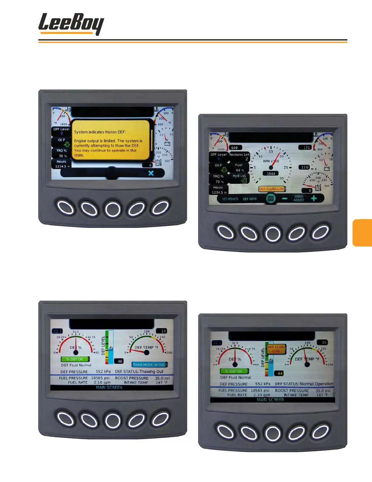 to navigate to the DEF Info screen for details. The DEF