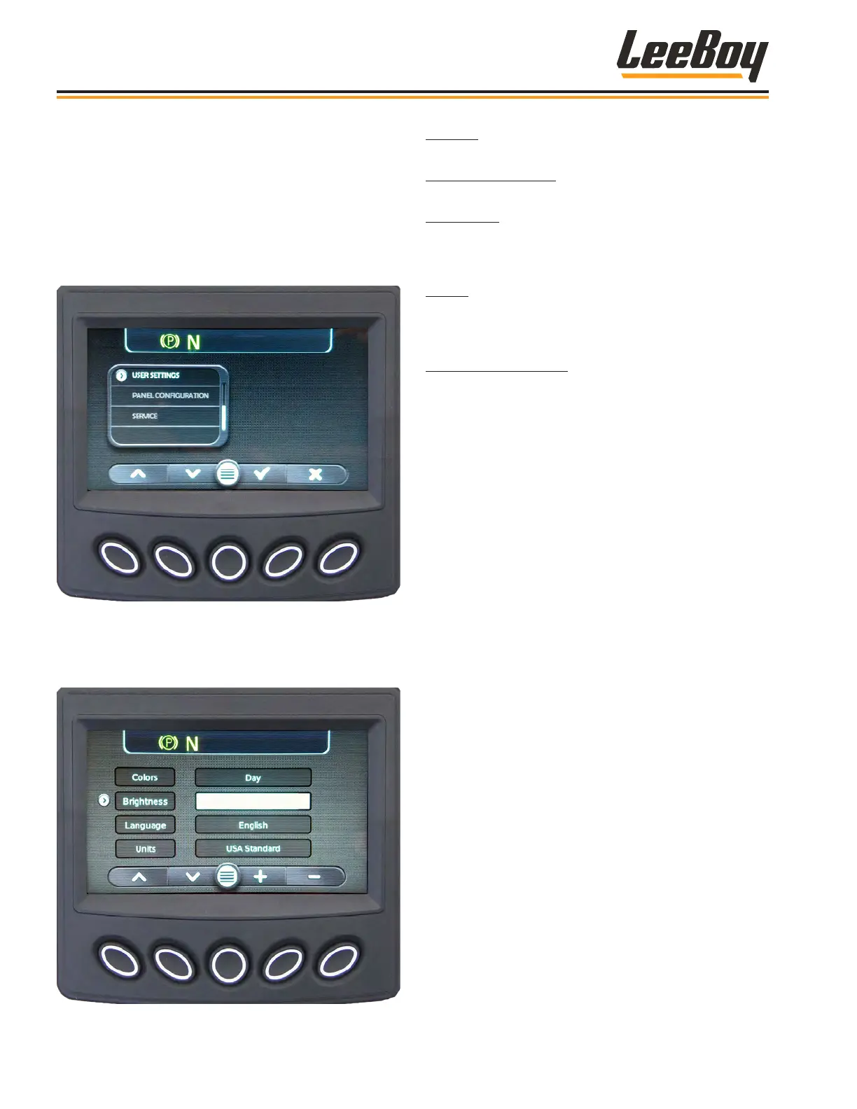 NOTE: The Panel Conguration and Service screens