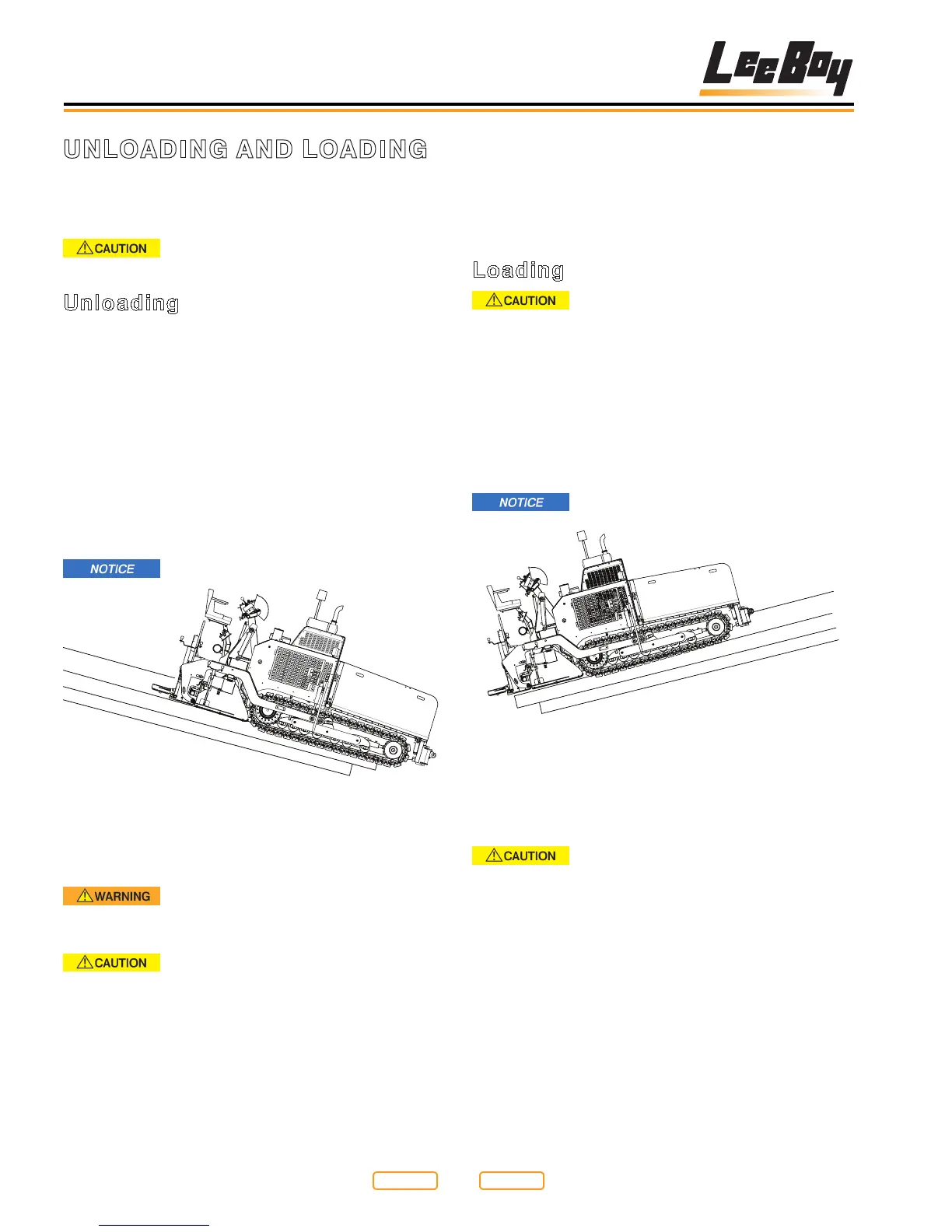 NOTE: If you have a problem unloading the paver -