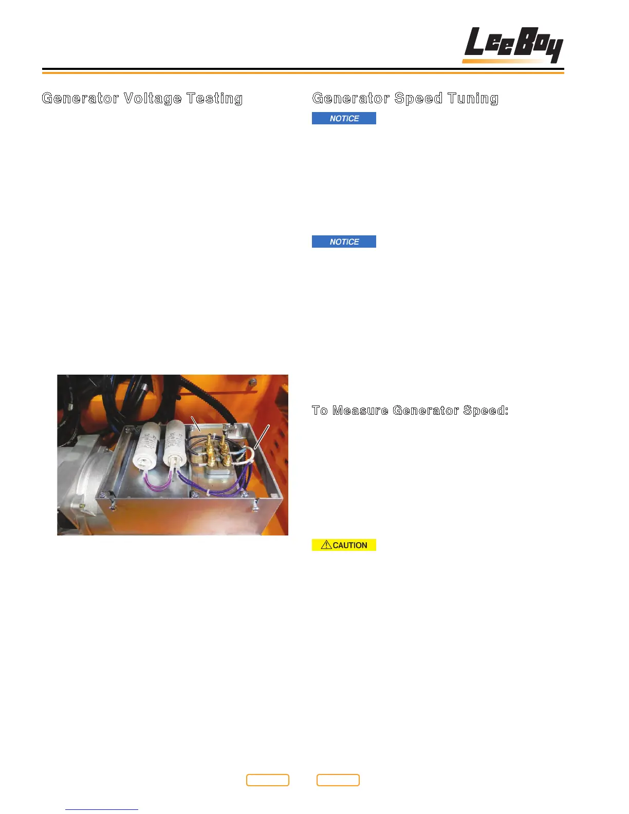 section, Generator Speed Tuning.