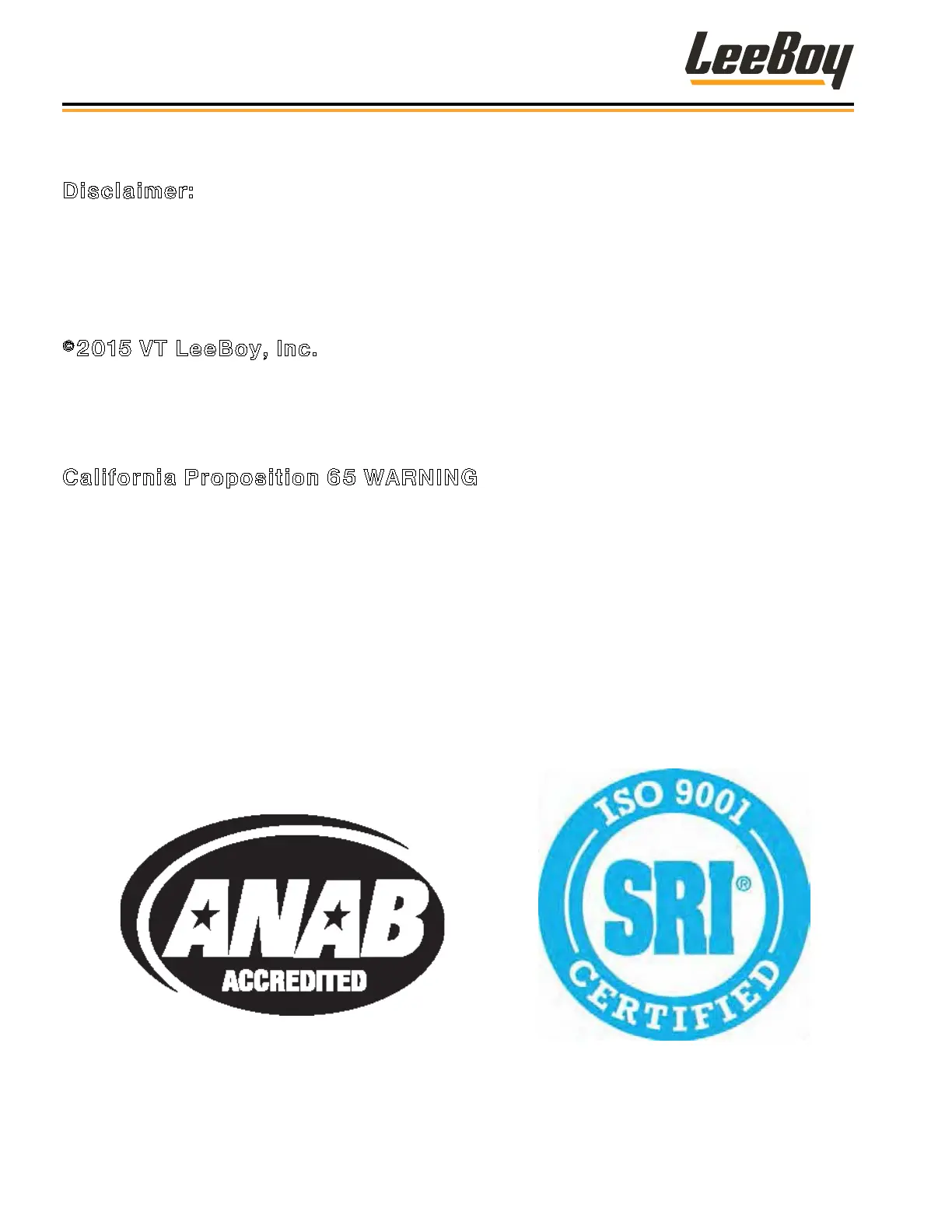 LeeBoy reserves all copyright and other rights in this manual and the manual’s content. No part of this manual may