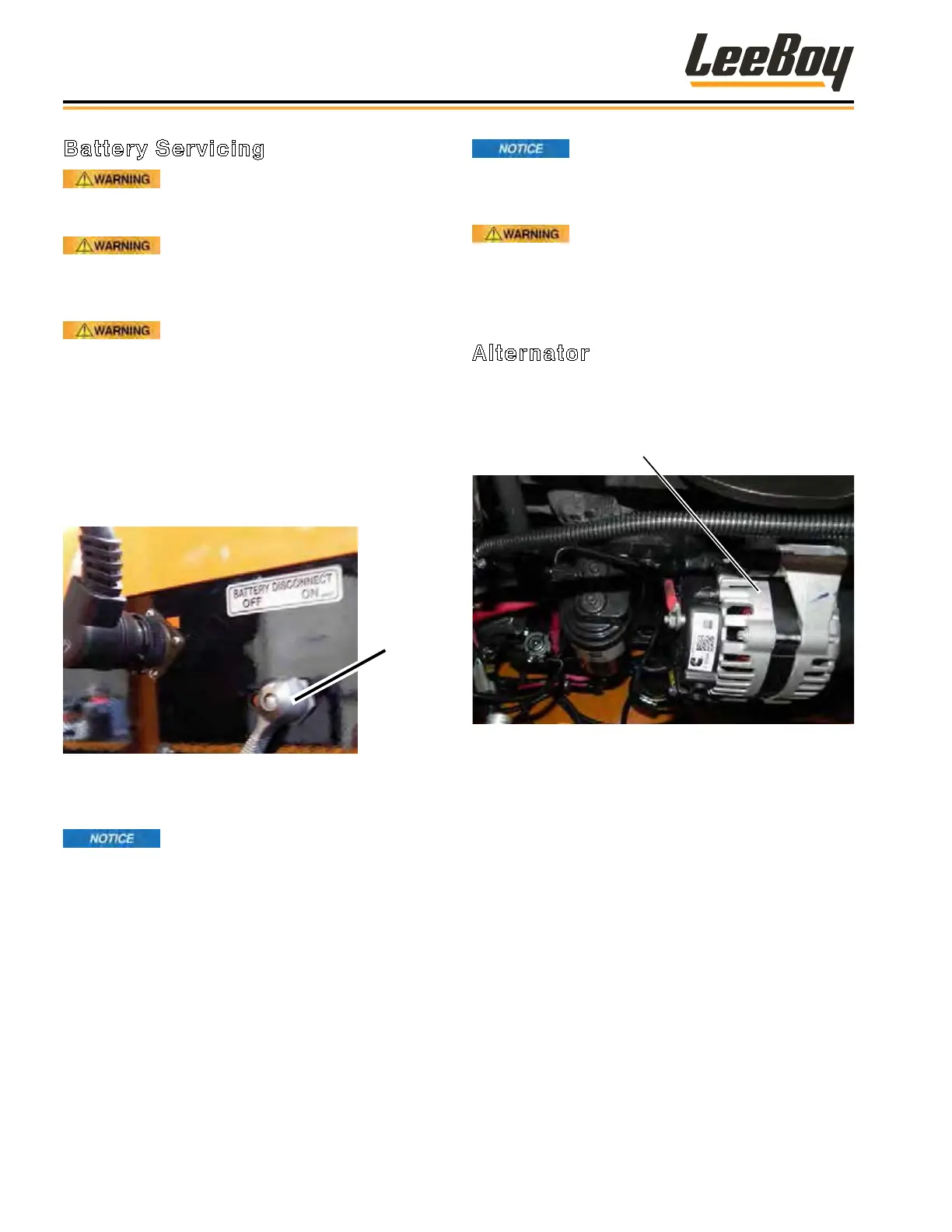 • Never disconnect the alternator while machine is