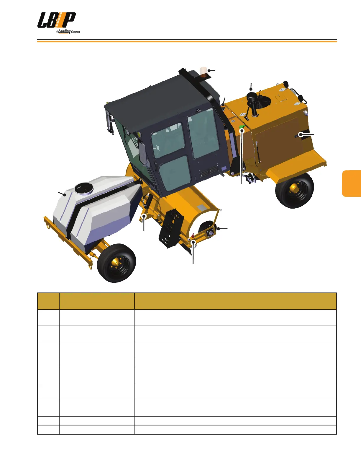 9 Engine Access Panel Locking panel to access engine (on each side of the machine).