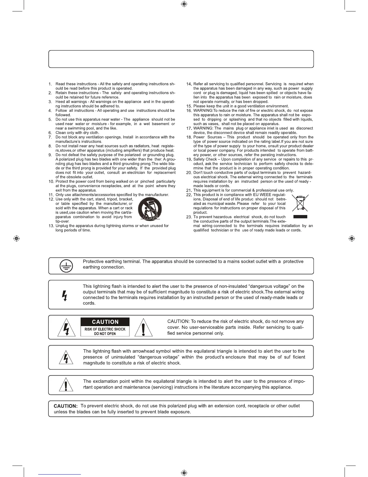 Leem HMM-8FX - General Safety Warnings; Important Safety Instructions; Electrical Hazard Alerts