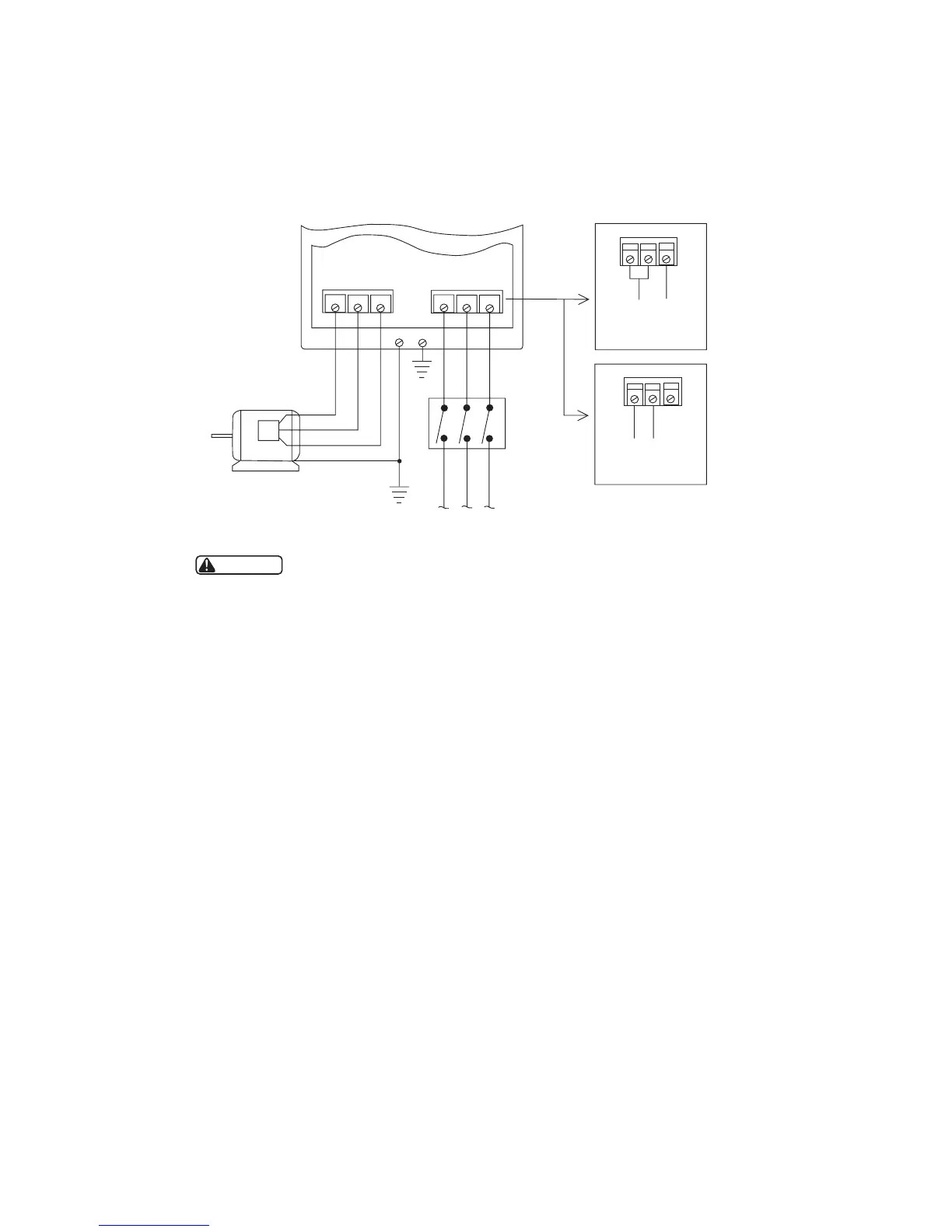 Do not connect incoming AC power to output terminals T1, T2, or T3. Severe damage to the