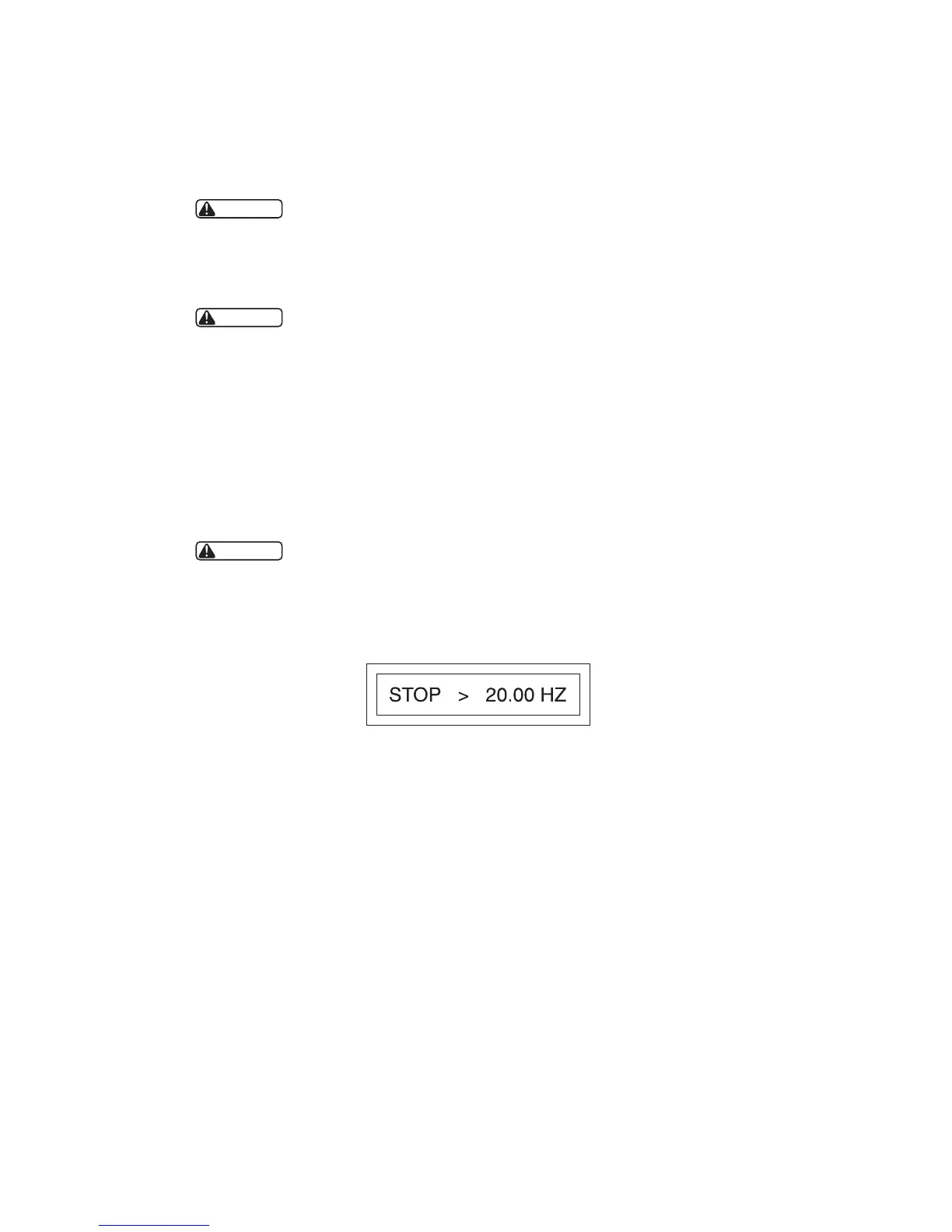 voltage and horsepower rating of the drive. The display should then show "STOP >20.00 HZ" which