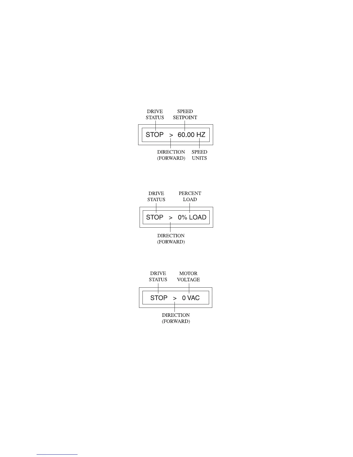 Pressing the ENTER key again will change the display from the % LOAD indication to the VAC (motor