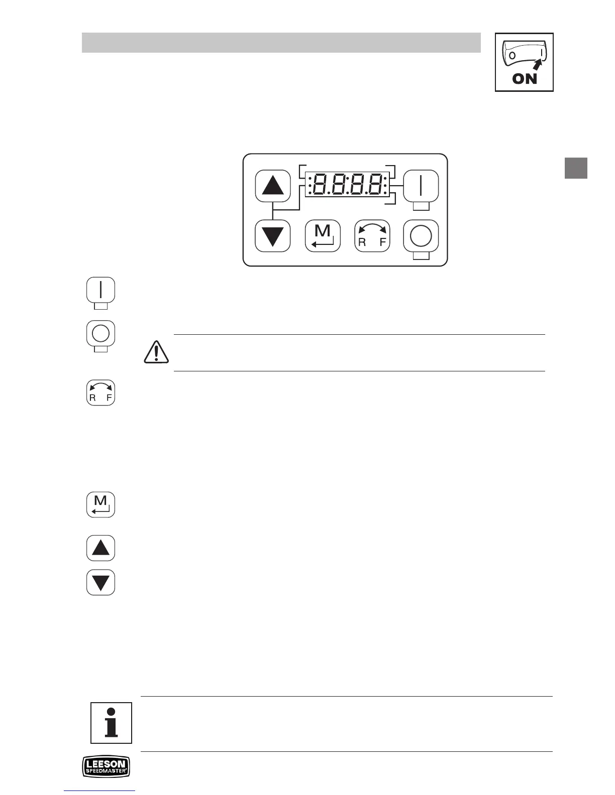 - The LED for the present rotation direction (FWD or REV) will be on