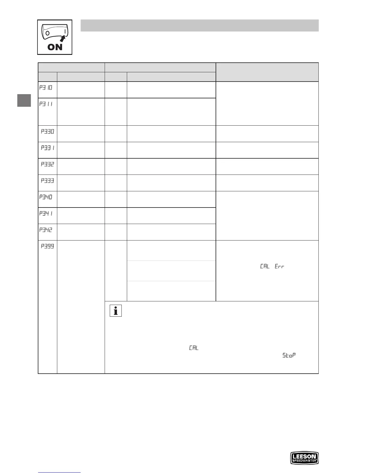 0 0 Calibration Not Done • If P300 = 2...5, motor calibration