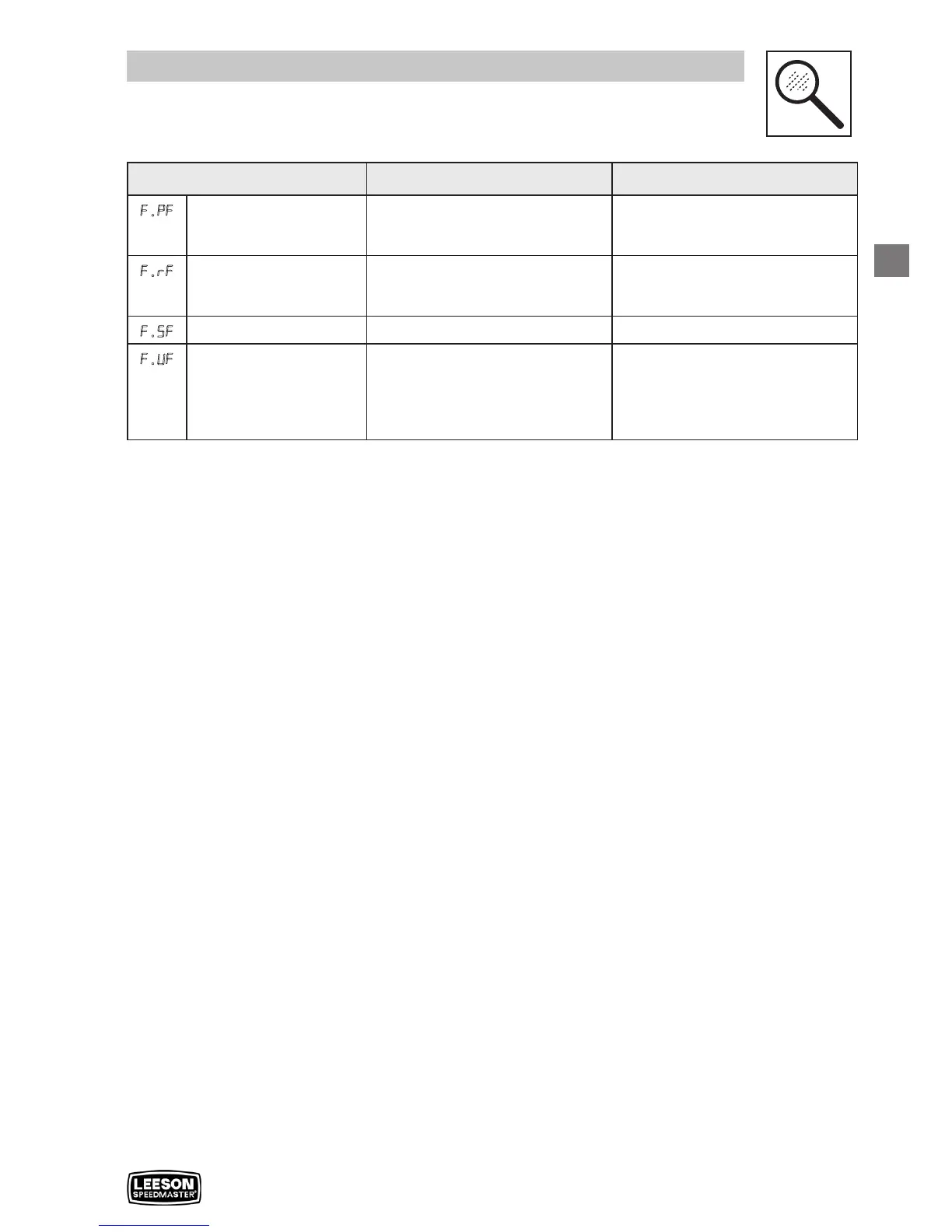 Motor Overload fault Excessive motor load for too long • Verify proper setting of P108