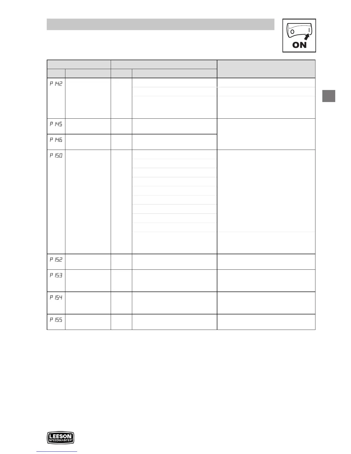 1.0 0.1 {kW} 200.0 If P150 = 7 or 8, sets the power at