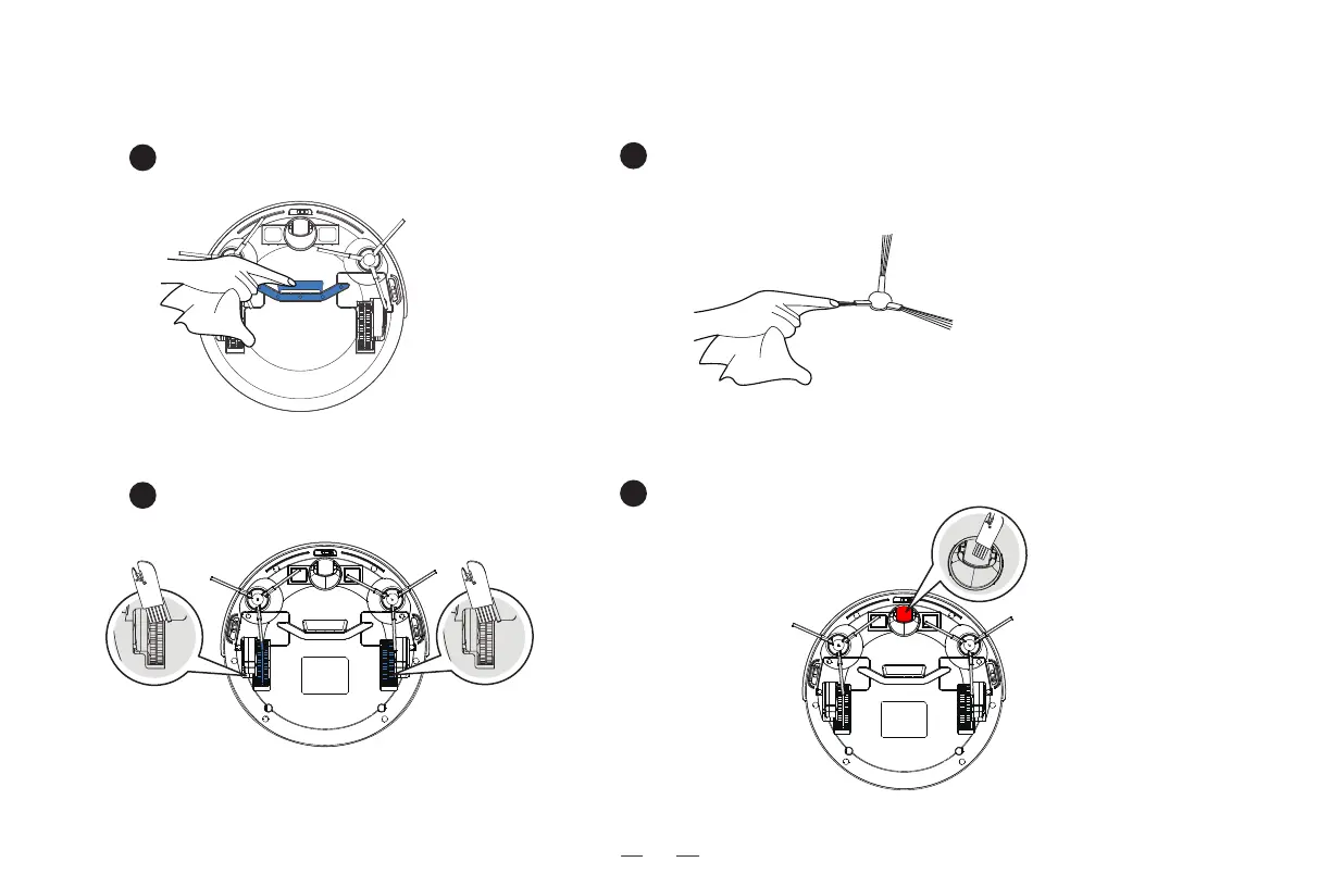Unplug the side brushes and wipe them with a piece of clean cloth.