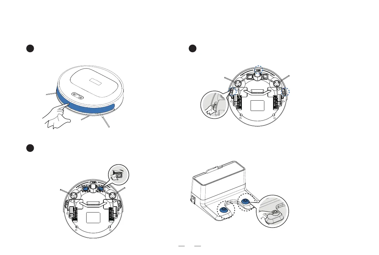 Please clean the charging electrodes of the robot and the Docking Station, respectively, with duster cloth.