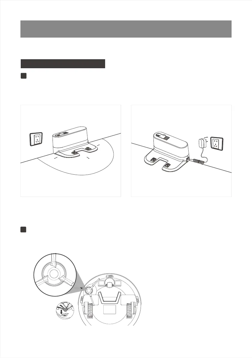 Attach Side Brush to the bottom of robot by pressing a brush into each slot until it clicks.