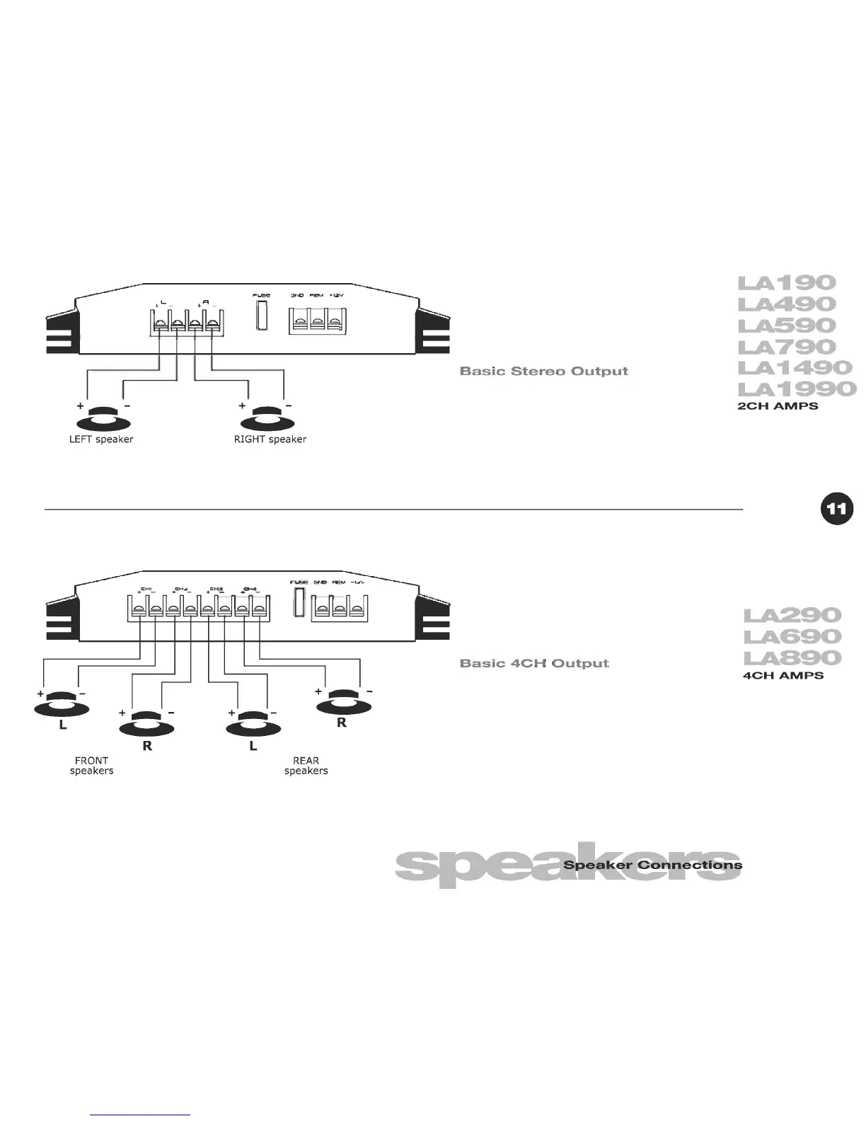 Legacy LA490 - Speaker Connections; Basic Stereo Output; Basic 4 CH Output