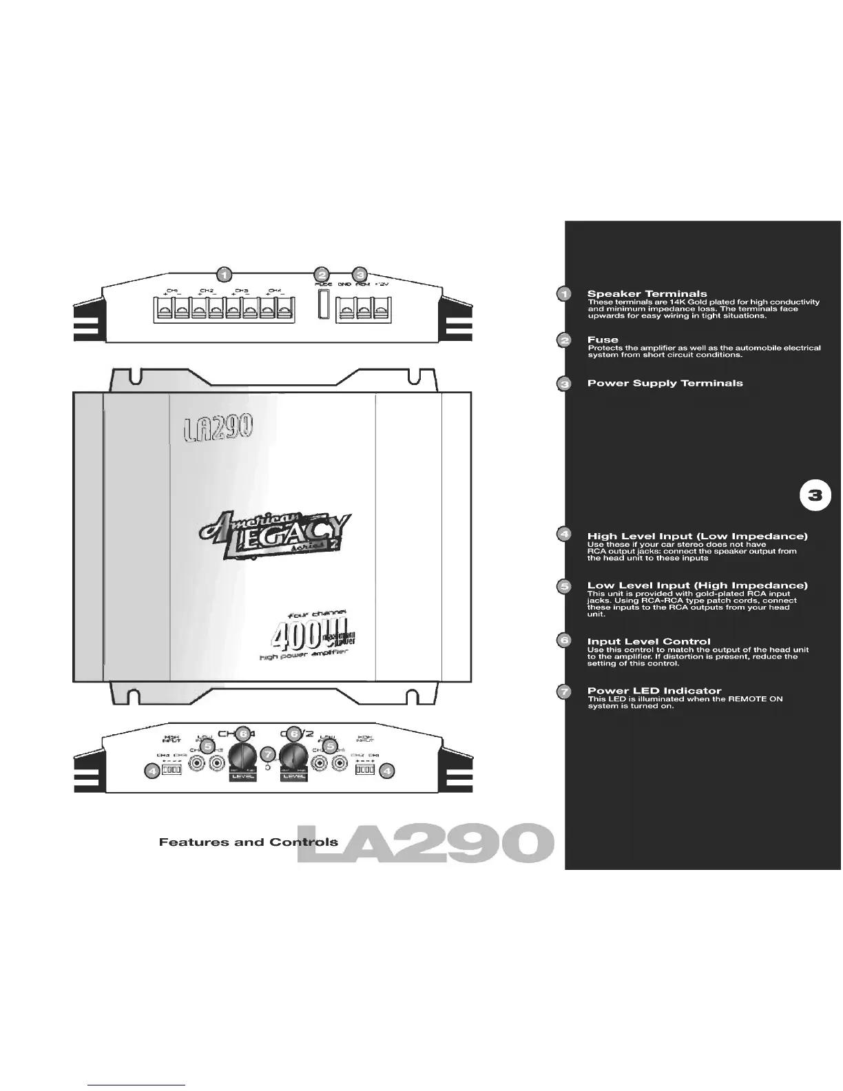 Legacy LA790 - Features and Controls LA290; Speaker Terminals; Fuse Protection; Power Supply Terminals