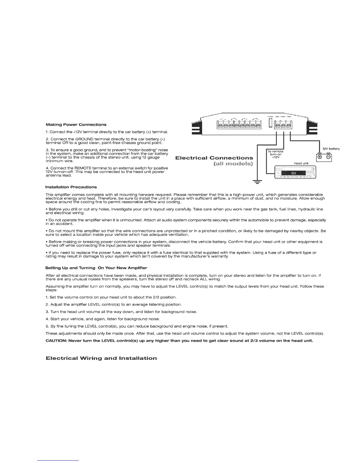 Legacy LA790 - Electrical Wiring and Installation; Making Power Connections; Installation Precautions; Setting Up and Turning On