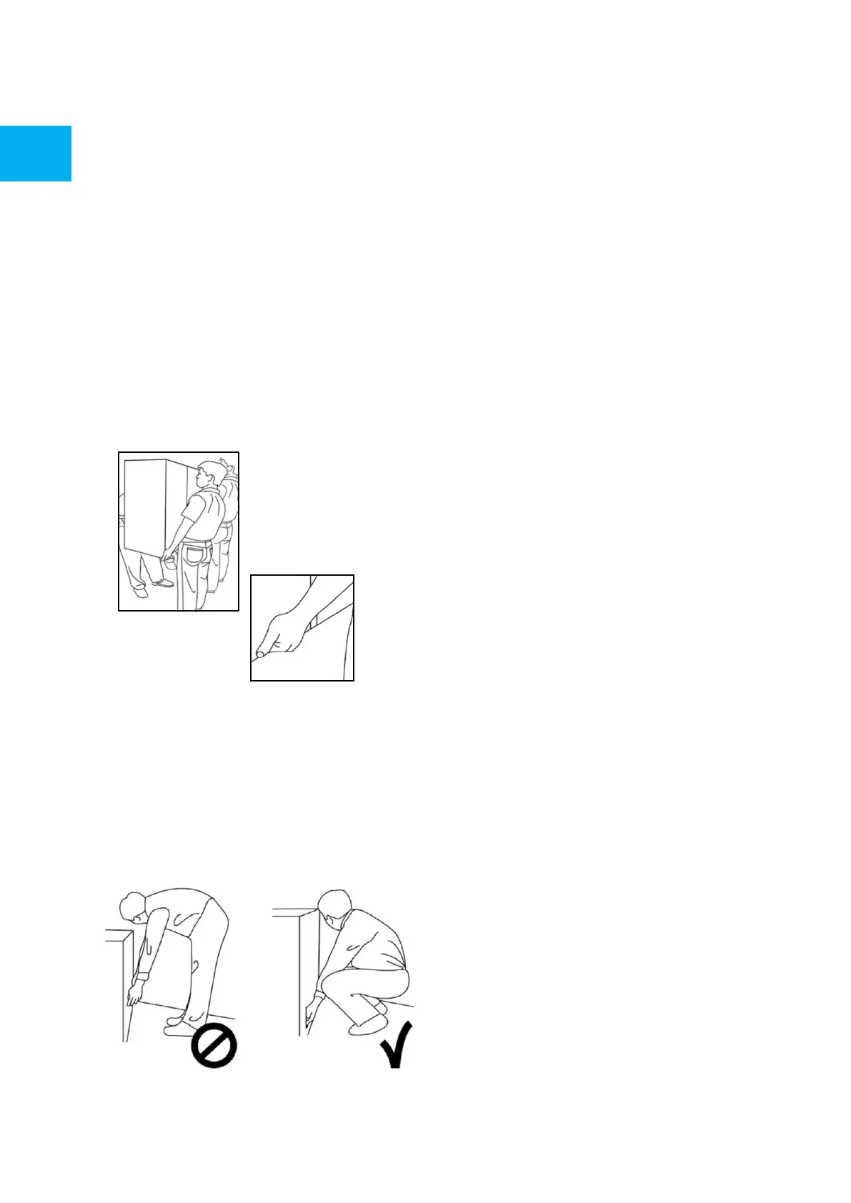 lifting techniques, as pictured below. Failure to