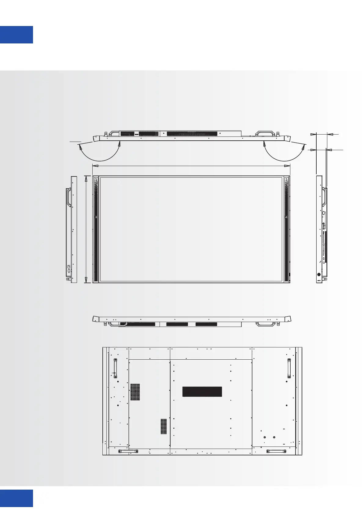 Die folgende Abbildung zeigt die Gesamtabmessungen des Monitors: