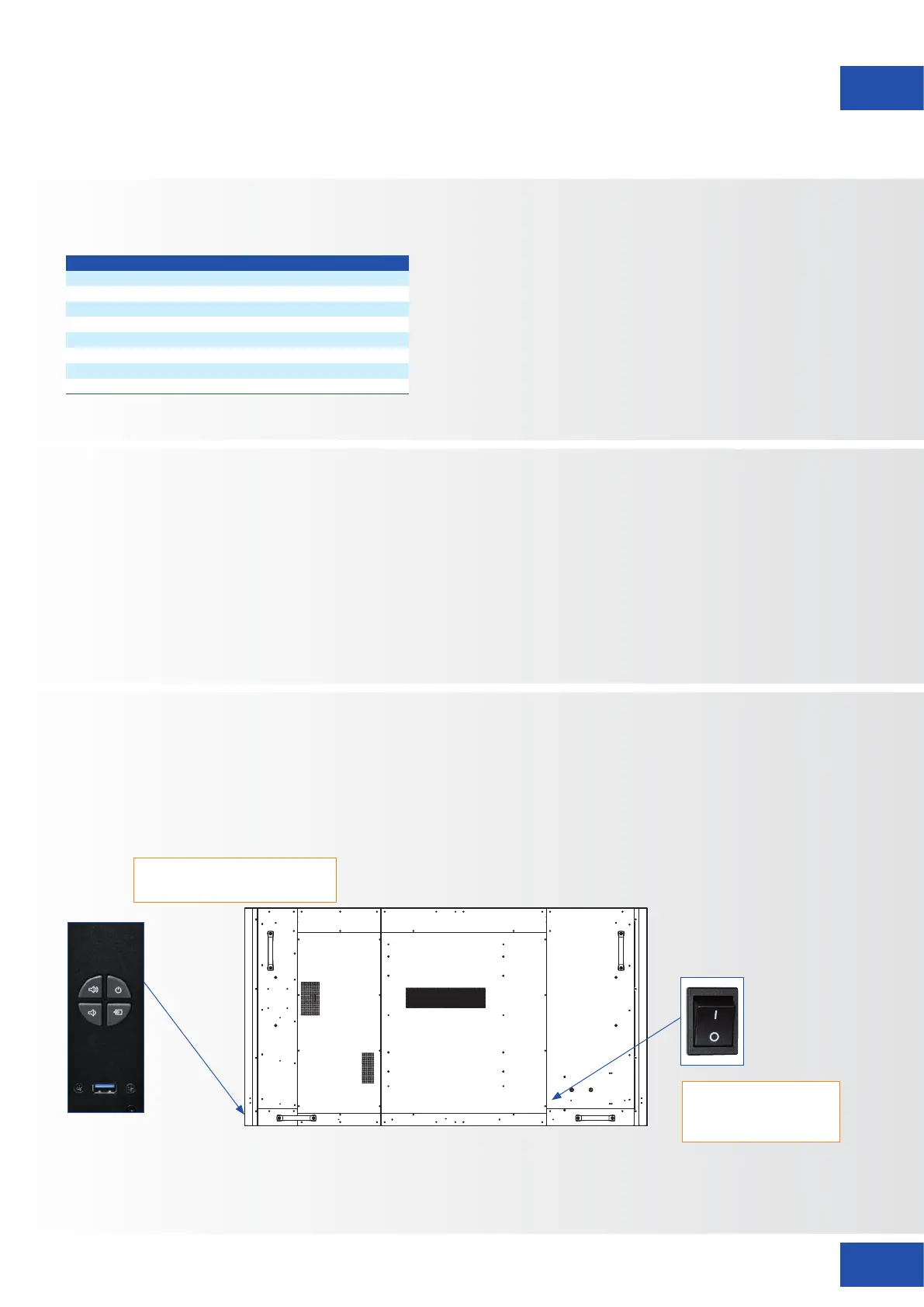 into the AC inlet on the side of the display. Locate the Main Power switch directly above the AC inlet and press