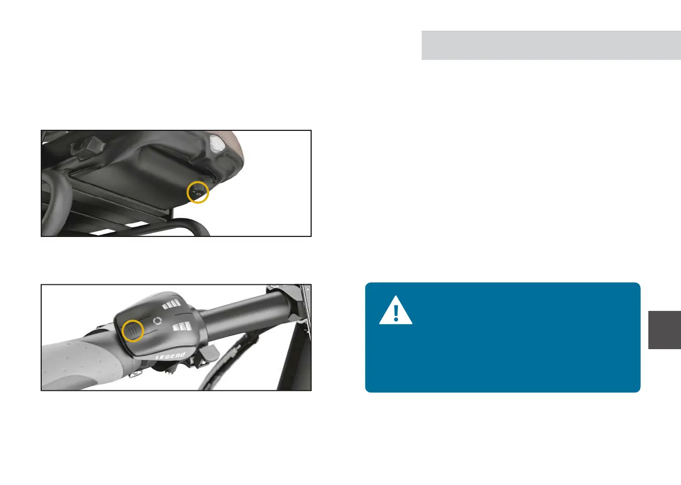 désactiver ce bouton lorsque vous n’utilisez pas votre vélo Legend pendant une longue période.