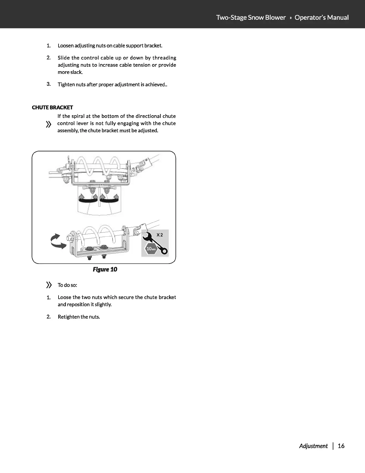 LEGEND FORCE 1005487565 - Chute Bracket Adjustment; Adjusting Chute Bracket Engagement