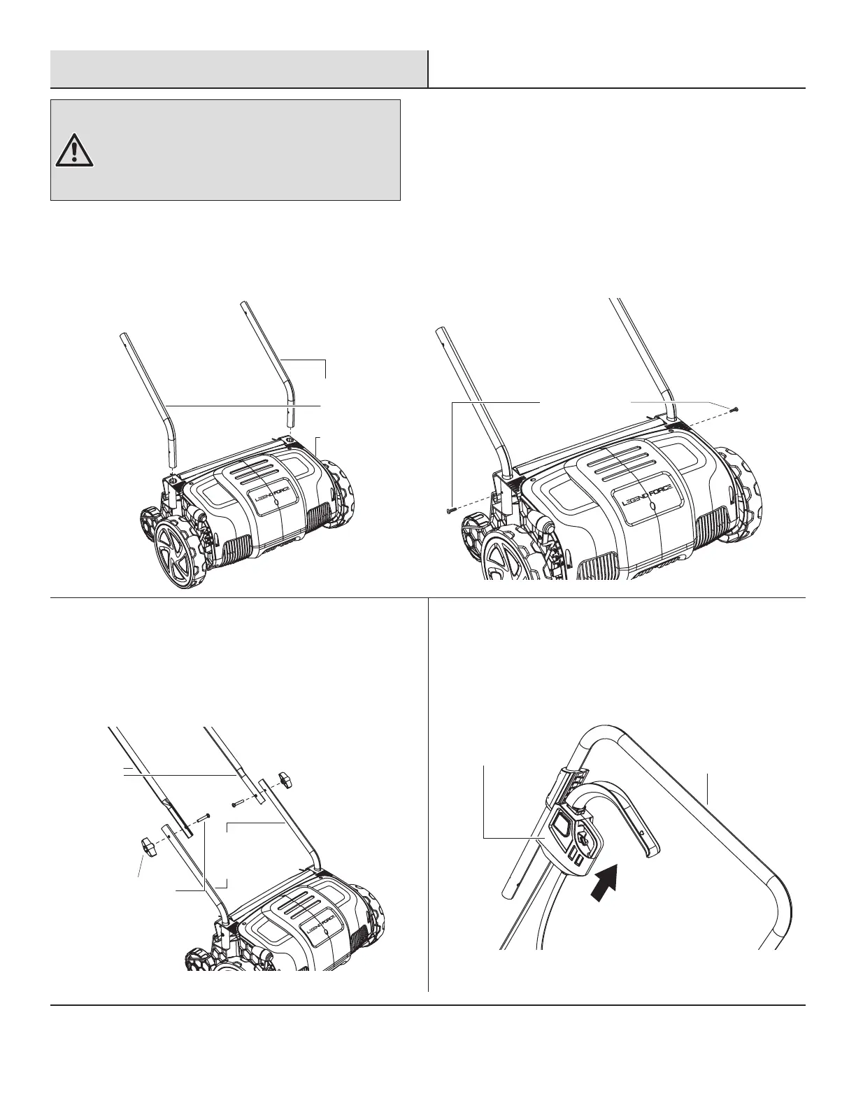 □ Insérez les barres de poignée inférieure dans le boîtier du moteur et fixez-les avec les deux vis cruciformes.