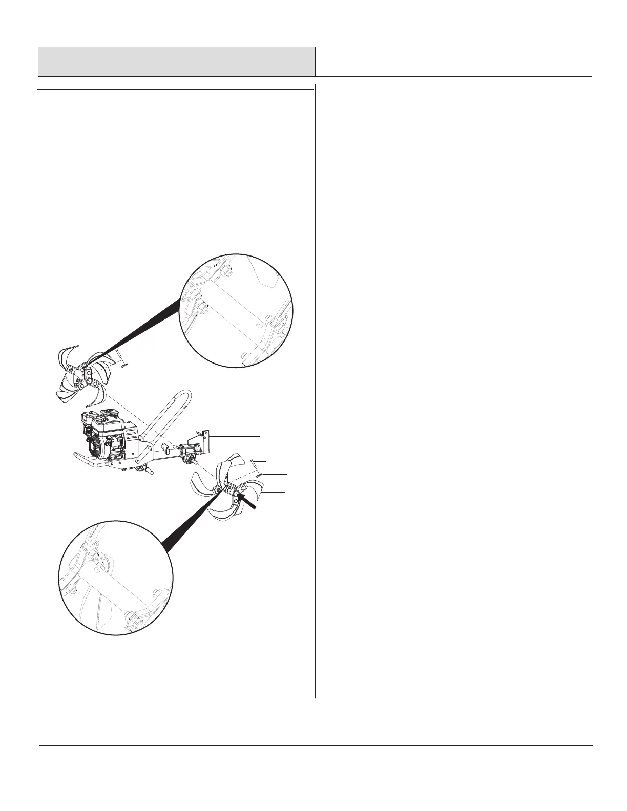 located on the rear of the tiller. Align pre-drilled holes