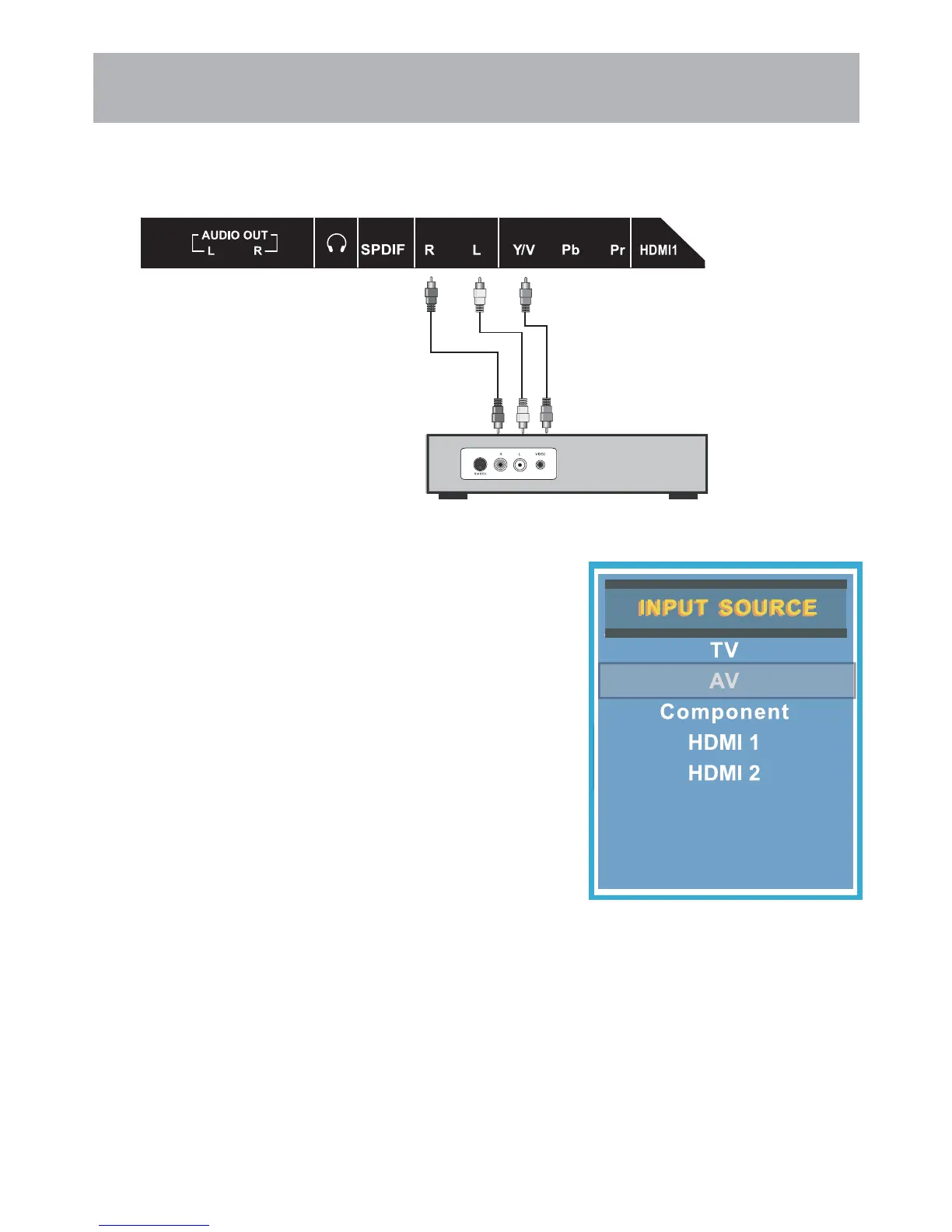 external A / V equipment (i.e.: DVD player, set top box) to AV input