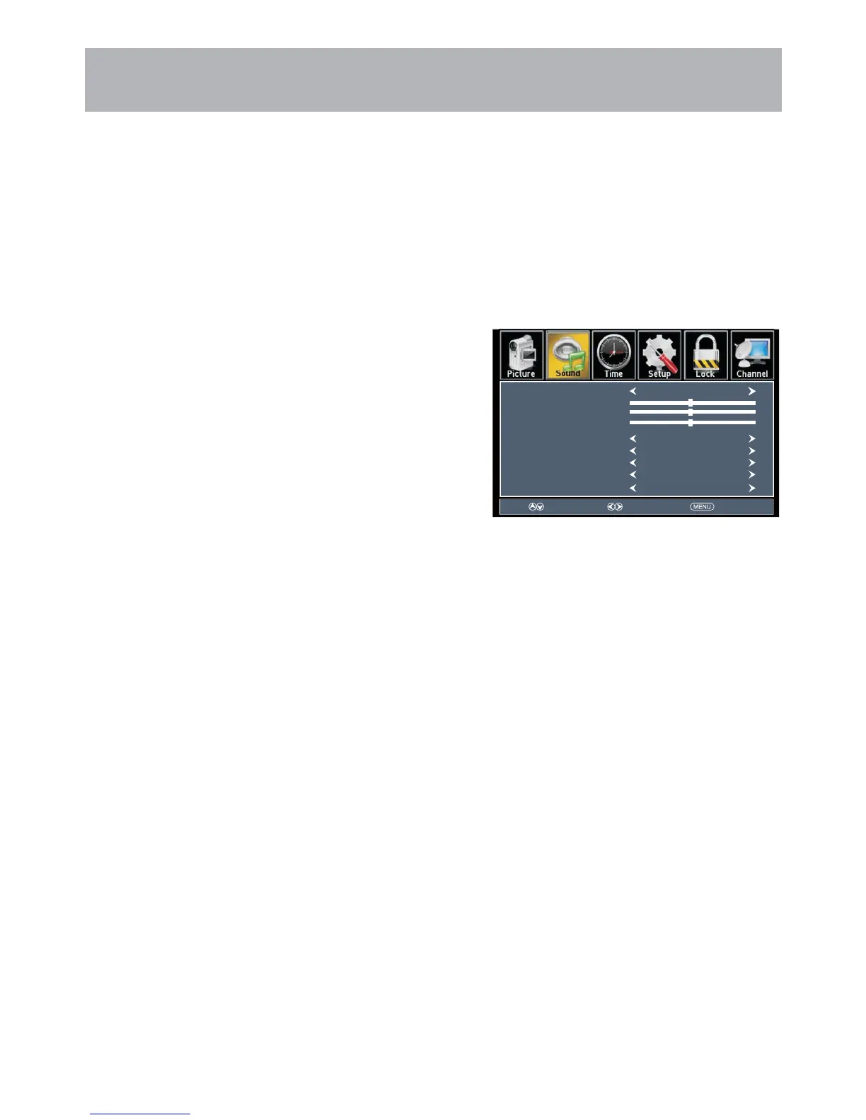 Press the MENU button on the remote control. Navigate using arrow buttons to select Sound. Press the arrow