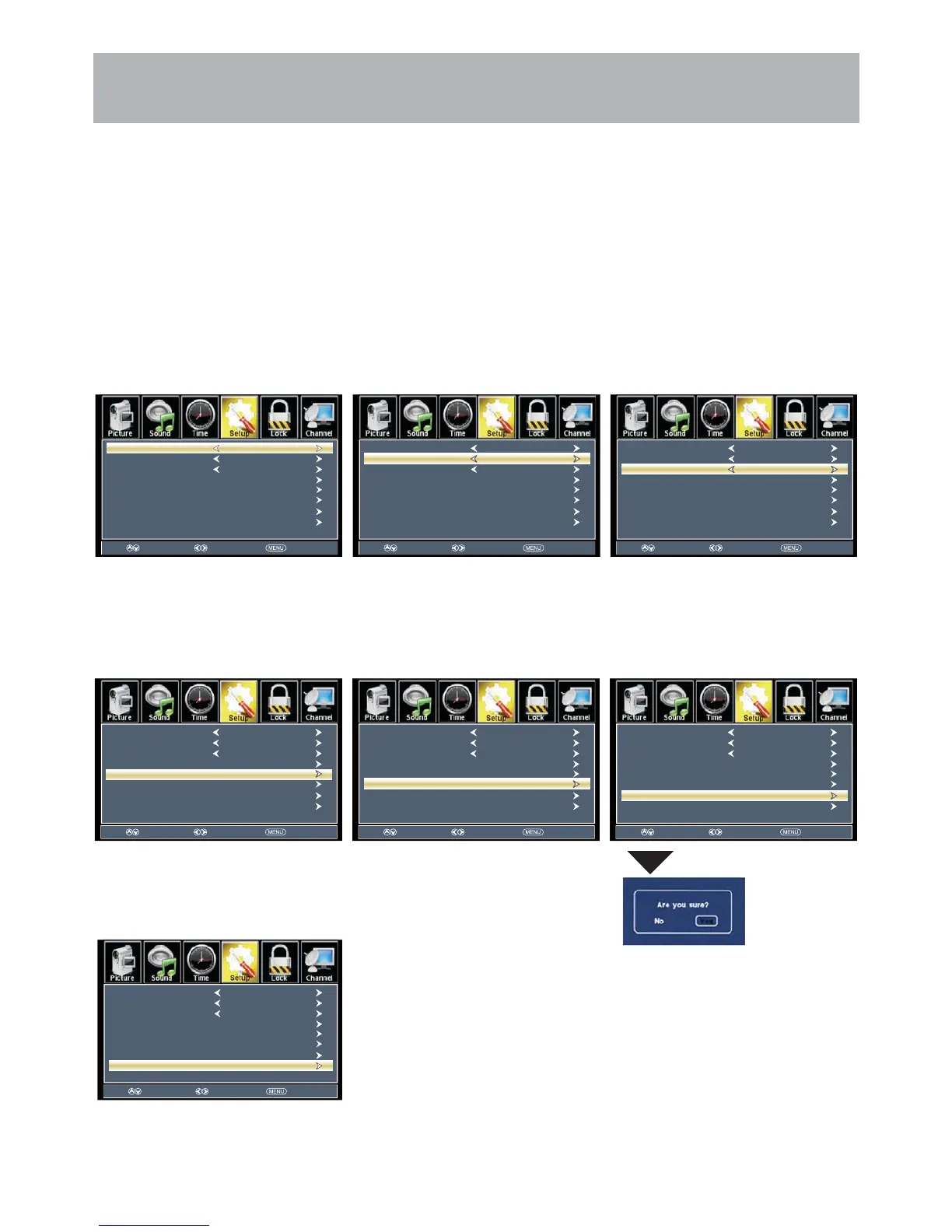 Press the MENU button on the remote control. Navigate using arrow buttons to select Setup. Gain access to