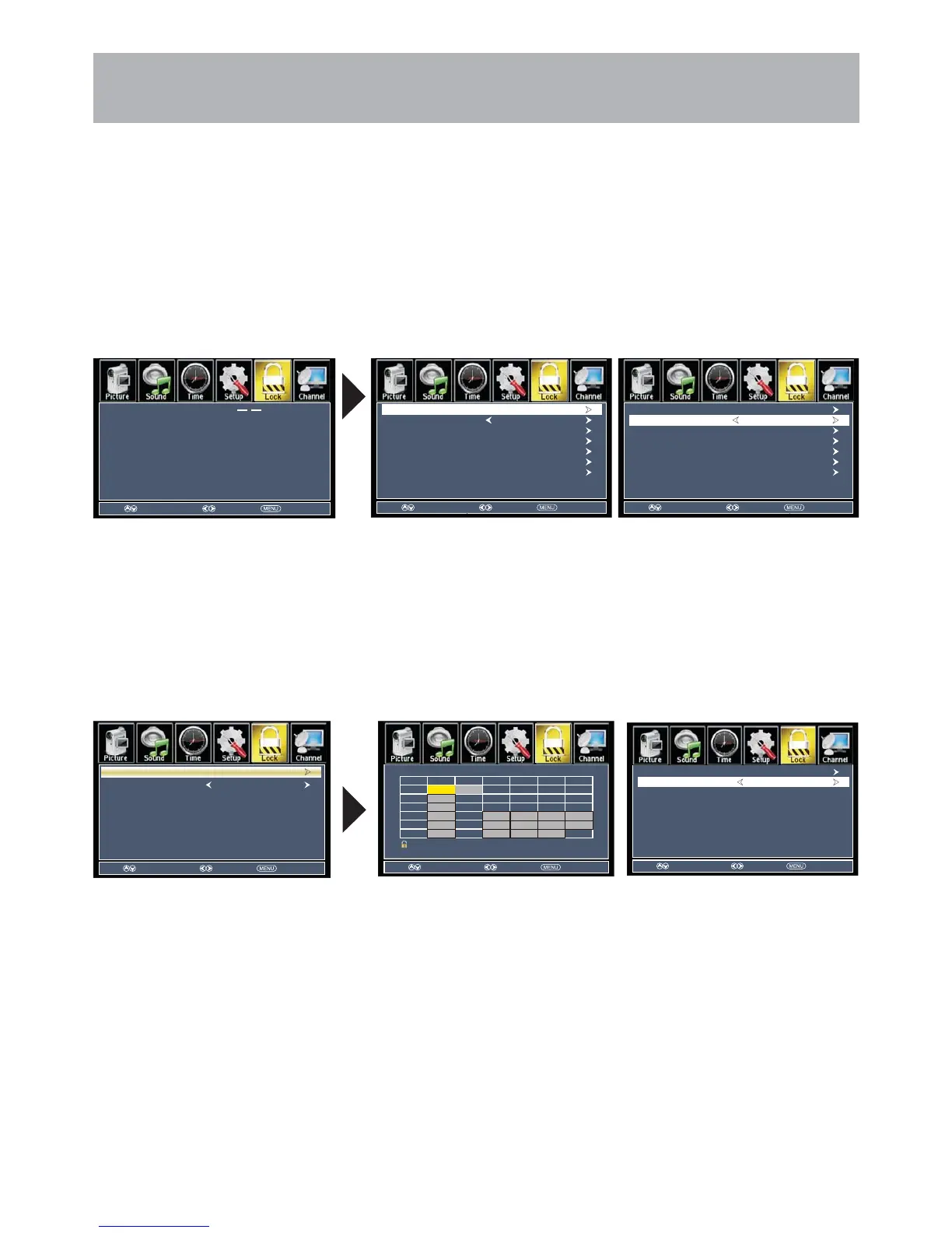In the Lock menu, you may block television and movie programming based on TV ratings and Motion Picture Association
