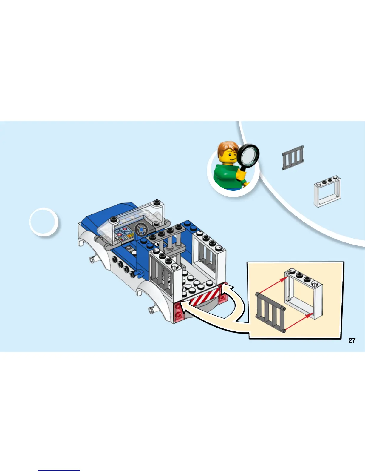 LEGO 10735 - Police Car Construction: Cage Side Panels; Adding Cage Side Panels