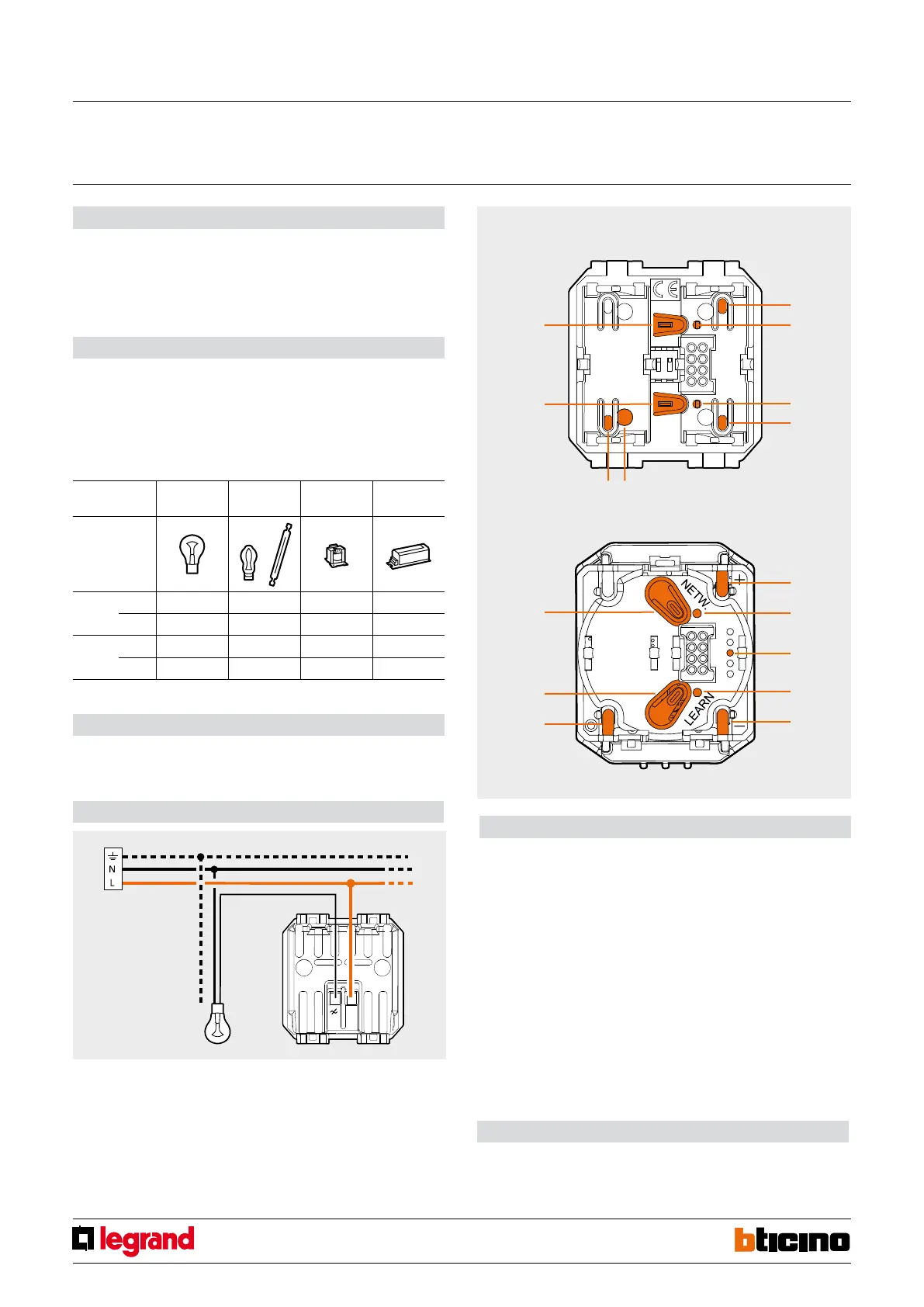 LED. For the connection of the Dimmer to the load and to the electric system no neutral