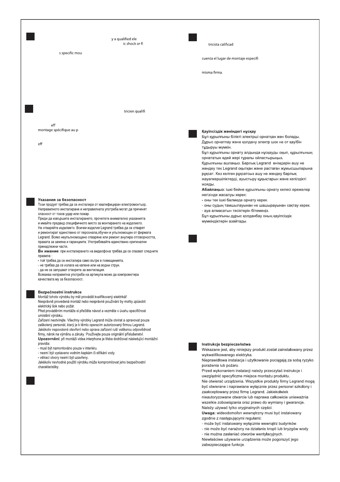 Caution: the video internal unit must respect the following installation rules: