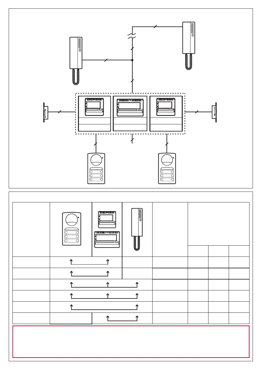 you have 100 meters between the outdoor unit and the control interface and 100 meters between the control interface and the telephone sets, you must use the cross-section for 200 meters, and not for 100 meters,